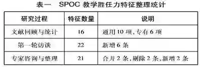 在22篇文献中,有16篇聚焦于高校教师通用胜任力模型建构,以班级课堂授课为背景,胜任力特征较宽泛,一些胜任力维度分类也存在交叉重叠;而针对某种具体情境下的高校教师胜任力研究显得不足,只有6篇文献研究了在线教育或网络教育环境下的胜任力(其中MOOC1篇、远程教育4篇、翻转课堂1篇),周榕(2012;2014)通过行为事件访谈法完成了远程教育中11项通用胜任力及5项岗位序列胜任力的内容设计,并进而基于灰色系统方法构建了胜任力评估指标体系;颜正恕(2015)以相关文献为研究样本,使用特征项抽取和编码统计法构建了高校教师慕课教学胜任力模型,并对模型进行验证。以上研究对高校教师SPOC混合教学胜任力构建有一定参考价值。