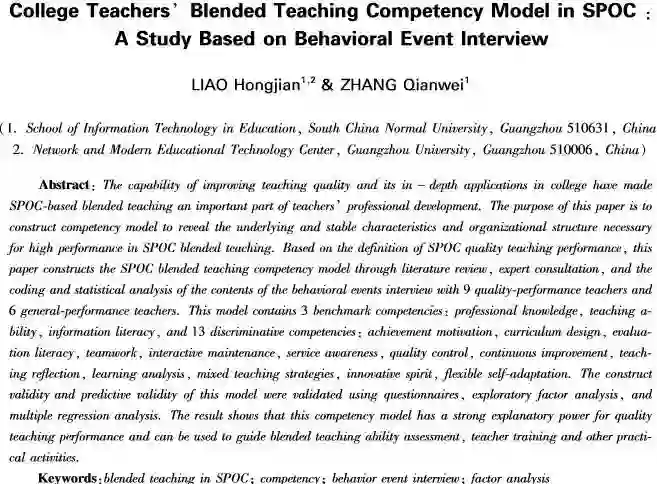 关键词:SPOC混合教学;胜任力;行为事件访谈;因子分析