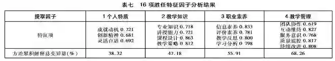 以往研究表明,平均等级分最为稳定可靠(仲理峰,2004)。在表五中,专业知识、讲授能力、信息素养三项特征虽然在绩优组和绩平组之间没有显著差异,但其平均等级得分在两个组均很高(大于2.0分),说明这三项是很基础的胜任力特征,因此本研究将其列为基准性胜任力集合。