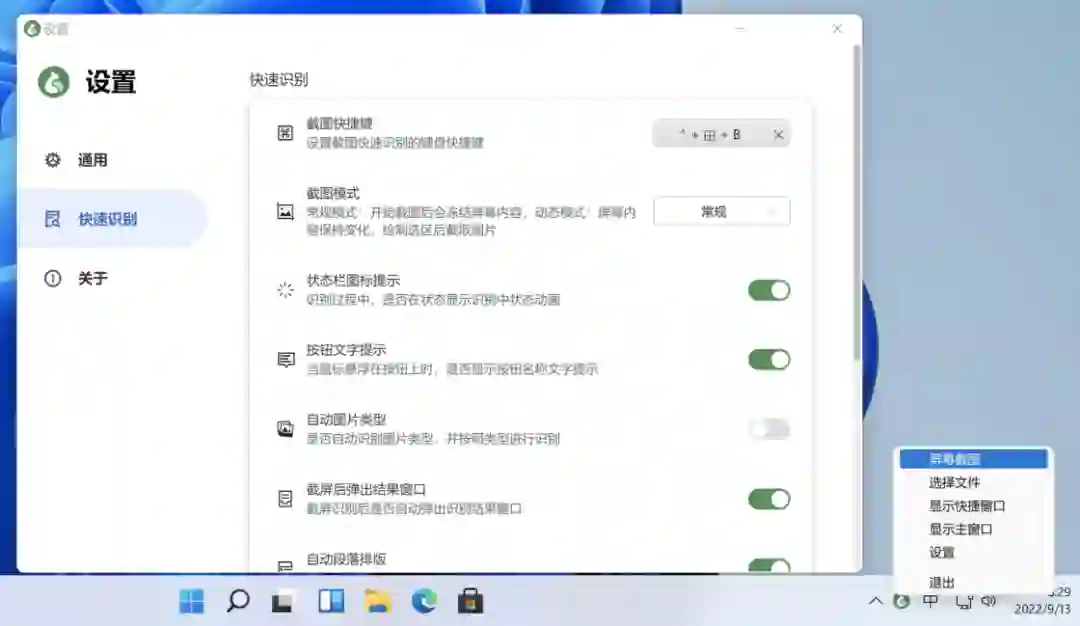 除了通过托盘图标菜单识别,可以在白描设置界面设置截屏的快捷键,识别更高效。