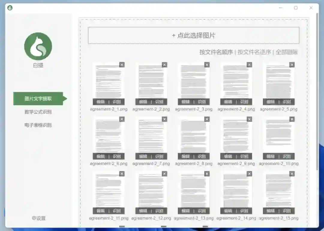 主界面的文字识别,除了图片格式,也支持直接将 PDF 文件拖入识别,首先软件会将 PDF 的所有页面解析为图片,然后进行识别。