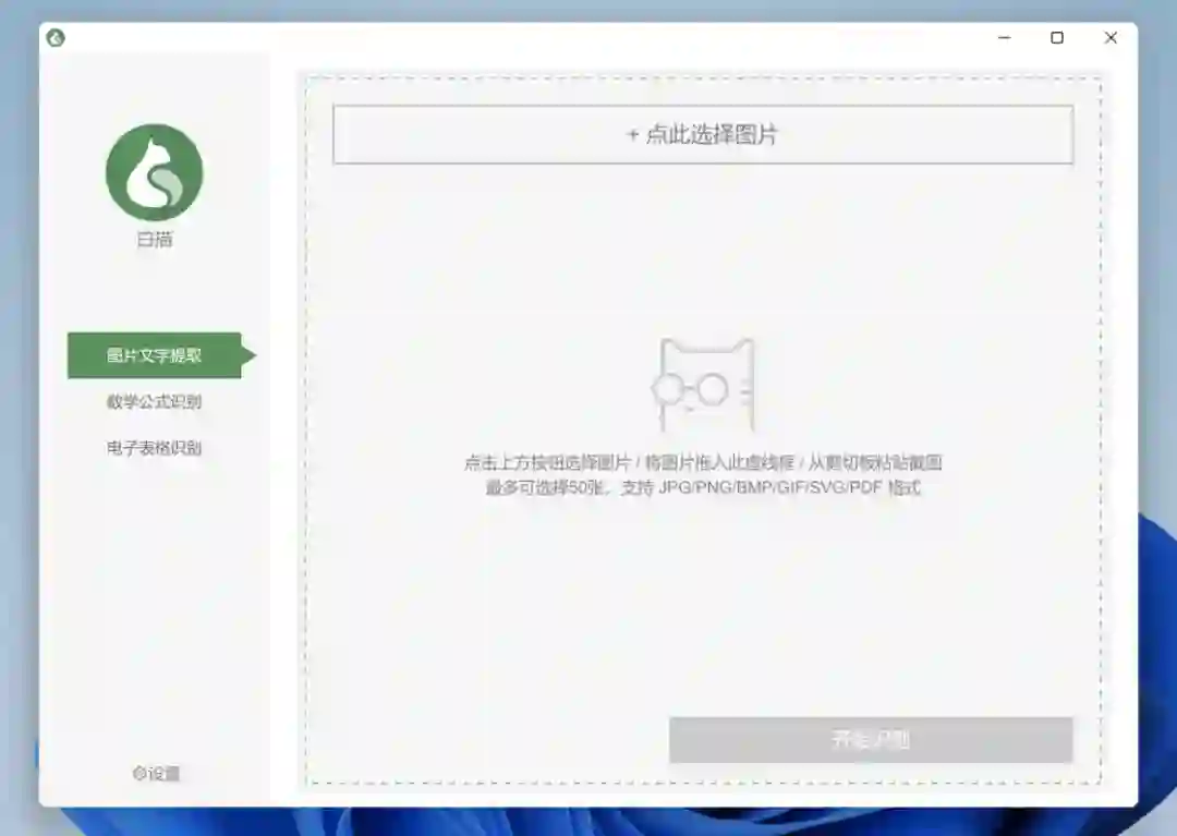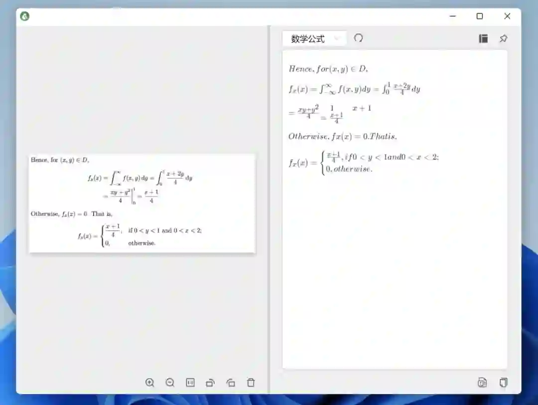 主界面左侧切换为公式识别,可以将图片中的公式转换为文本,复制为 LaTeX 格式。
