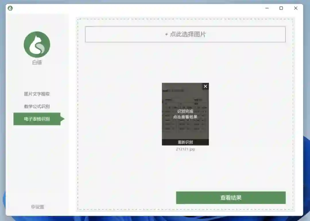 主界面左侧切换为表格识别,可以直接将图片中的表格转换为 Excel 格式,无论带线还是不带线的表格都支持。