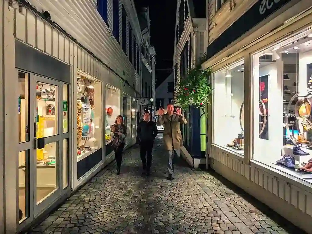 那晚在斯塔万格,我和同伴走出酒店寻找餐厅。走在老城路上,一个高大的挪威绅士,冲着我的相机大方地友好招手,攀谈中,还热情地一路带着我们走到码头一家老餐厅。