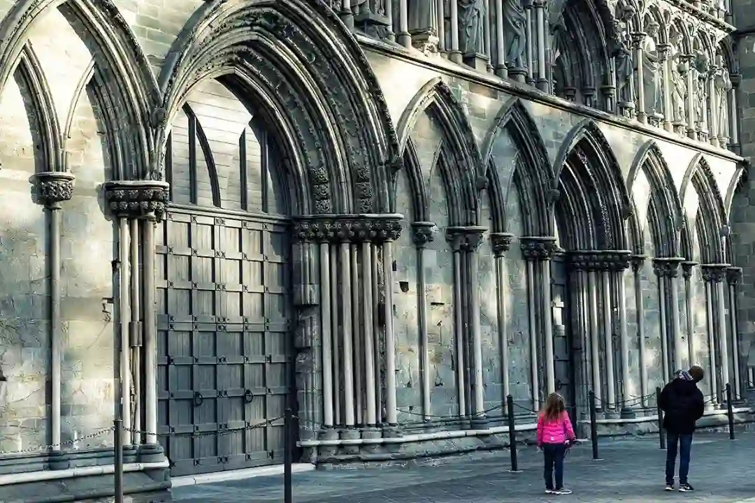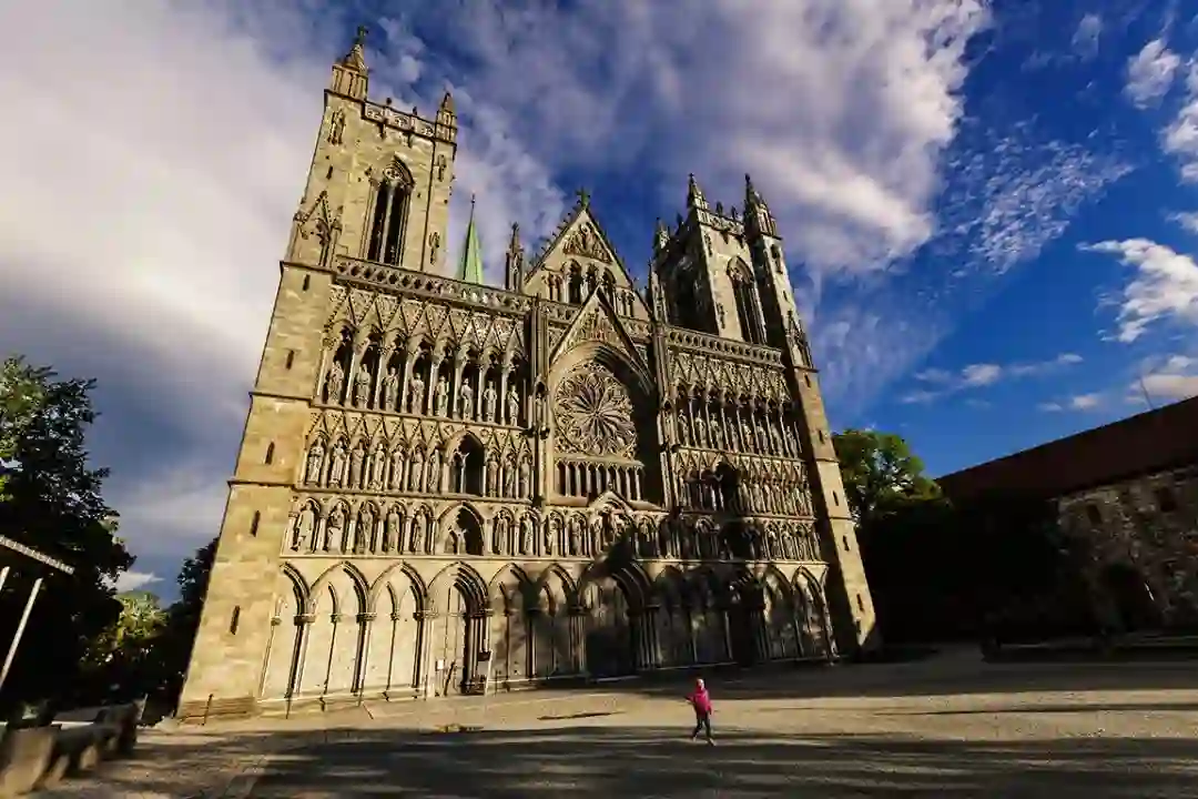 尼达洛斯大教堂(Nidaros Cathedral)是斯堪的纳维亚半岛上最为雄伟壮观的教堂。教堂于12、13世纪间建成,历任挪威国王均在此加冕。800年来,大教堂历经兵灾火劫。宏伟的哥特式大教堂用挪威的篮肥皂石和白大理石建造而成,装潢繁复,精雕细镂。