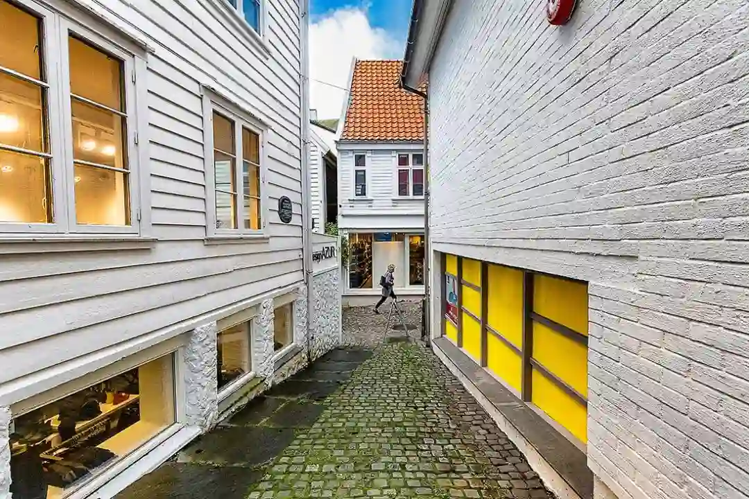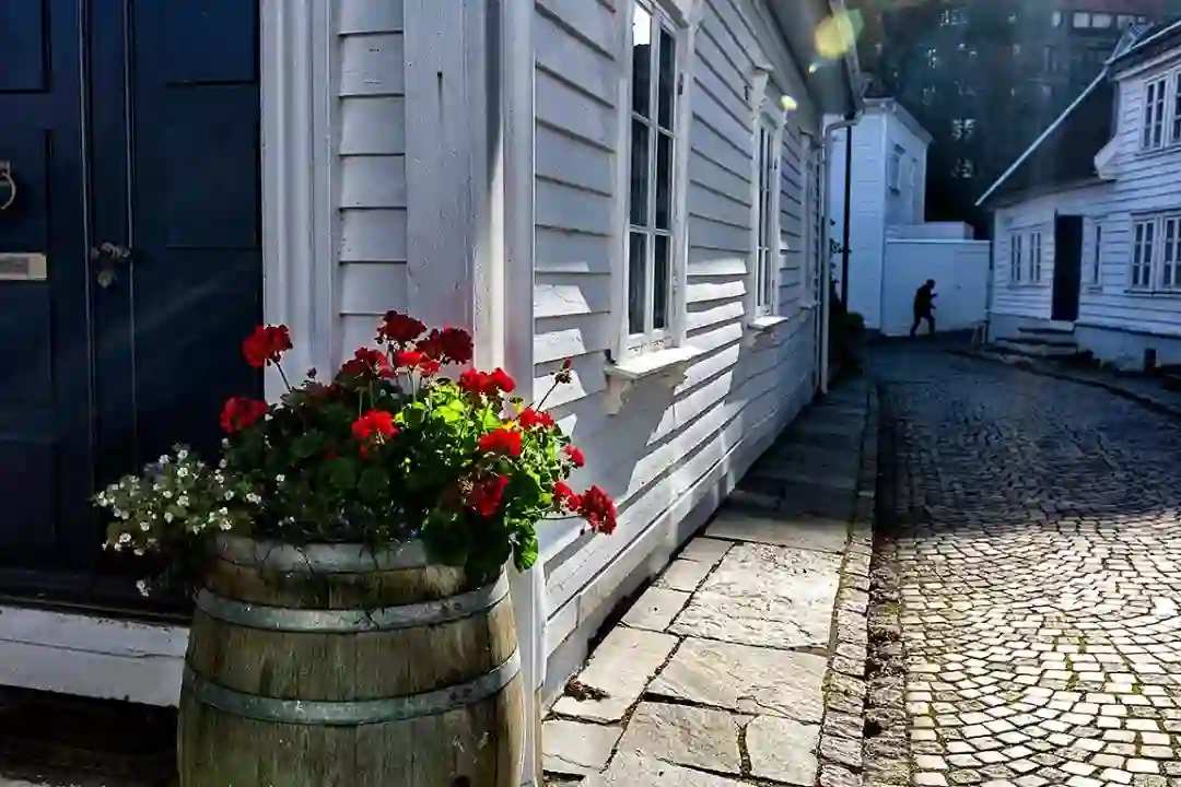 斯塔万格老城位于港口西侧,到处是18世纪的老式建筑,鹅卵石人行道被雨水打湿后,闪亮剔透得像镜面一般。