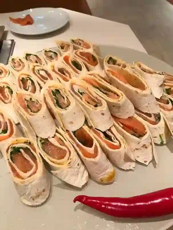 一大块厚实的三文鱼肉,烤的嫩嫩得恰到火候,下面衬着米饭、西红柿洋葱粒和各种香料,最下面是一张脆薄饼。270克朗。