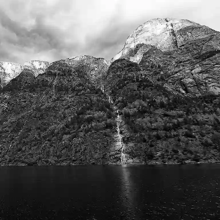 松恩峡湾是也最深的峡湾,狭窄而陡峭的水晶岩壁耸立在海上,其水面以上部分高达1000米,海面以下部分也有几百米。