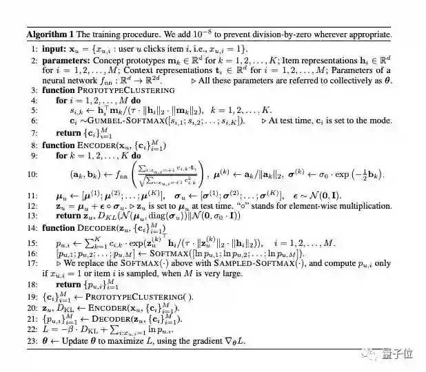 这是一个深度生成模型假设用户的表征 指示了这些商品通常都对应哪些宏观的消费意图。为了优化这个深度概率模型,他们还采纳了VAE的框架。以下的伪代码可以有助于更好的理解优化目标: