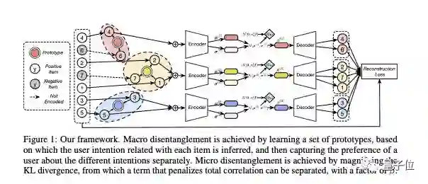 针对电商平台上用户行为的特点,他们的模型采用了层次化的设计:在推理一个用户的表征时将依次进行宏观解离化(macro disentanglement)和微观解离化(micro disentanglement)。