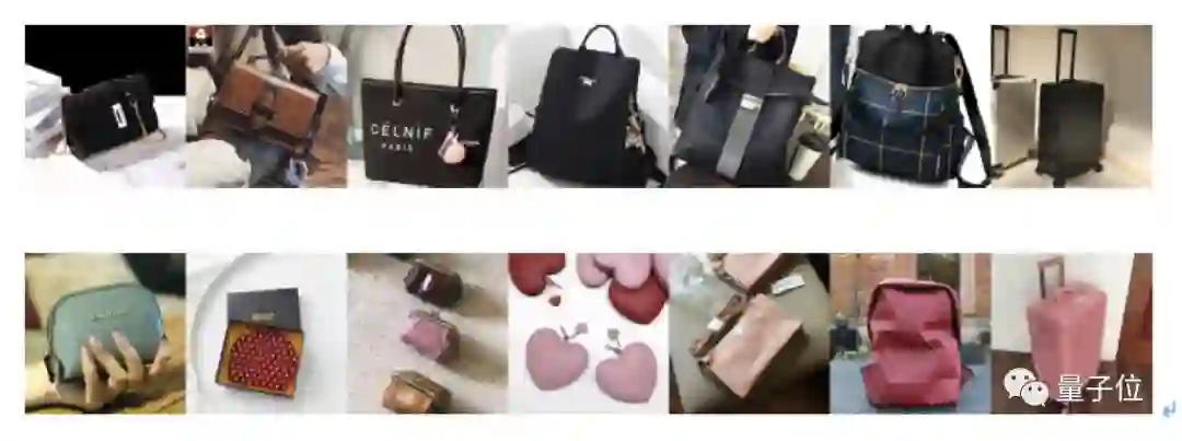以下是在另一个维度上检索得到的两批商品,可以看出这个被调控的维度和背包的颜色这一属性比较相关,并有较为明显的渐变性质: