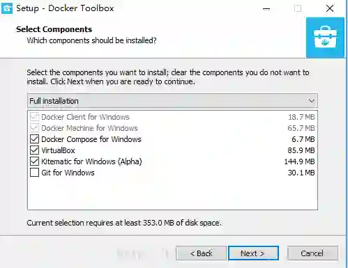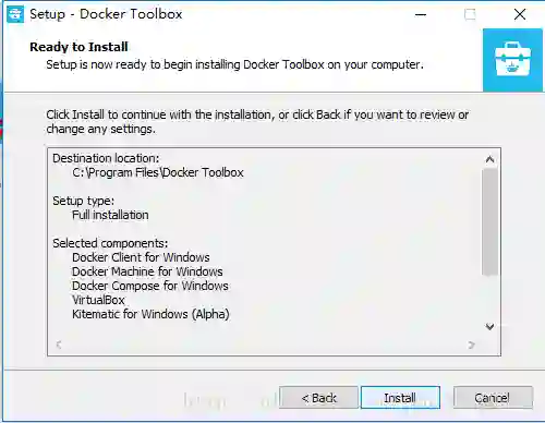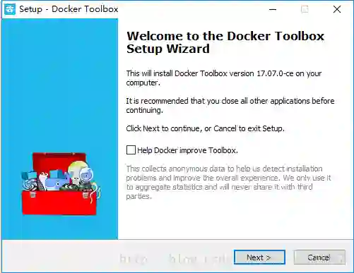首先下载 Docker 容器的工具包 DockerToolbox,笔者使用这个安装包不仅仅只有 Docker,它还包含了 VirtualBox 虚拟机,使用者工具包我们就不用单独去安装 VirtualBox 虚拟机了,DockerToolbox 的官网下载地址:https://docs.docker.com/toolbox/toolbox_install_windows/