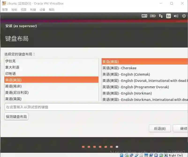 然后是选择键盘的布局,通常的键盘布局都是英语(美国)