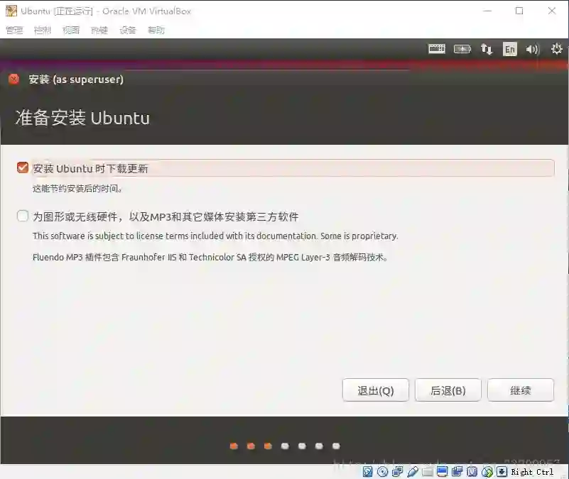 为了安装之后不用在安装和更新应用,笔者勾选了安装 Ubuntu 时下载更新,这样在安装的时候就已经更新应用了
