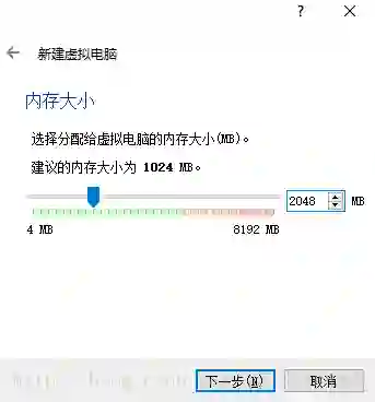 选择分配的内存,我这里只是分配了 2G,如果正式使用 PaddlePaddle 训练模型,这远远不够,读者可以根据需求分配内存