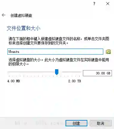 这里就是选择虚拟硬盘大小的,最后分配 20G 以上,笔者分配 30G,应该够用。