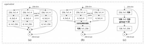 [8]的作者在文章中提出了ResNet的一种变体,代号为ResNeXt。下图是其基本构件:
