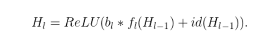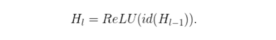 既然我们已经知道了H_(l-1)是一个ReLU的输出结果,而且这个输出结果已经是非负的了,那么上面的方程式就会减少到只剩下一个恒等层:
