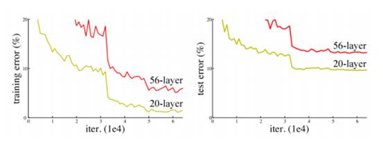然而,我们不能通过简单地叠加层的方式来增加网络的深度。梯度消失问题的存在,使深度网络的训练变得相当困难。“梯度消失”问题指的是即当梯度在被反向传播到前面的层时,重复的相乘可能会使梯度变得无限小。因此,随着网络深度的不断增加,其性能会逐渐趋于饱和,甚至还会开始下降。