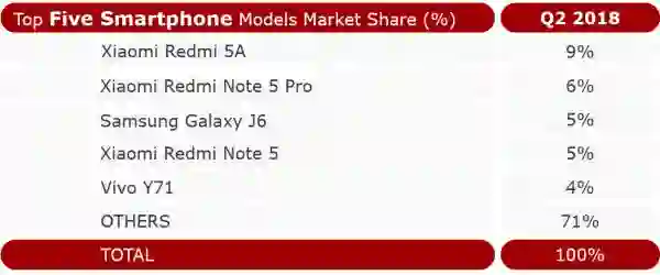 印度前五大手机市场份额