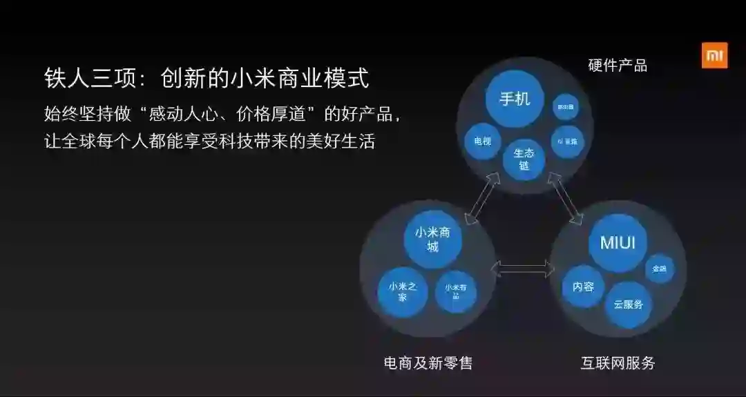 然而,从创始团队的基因以及商业模式的搭建,小米又的确是一家深具互联网思维的企业。在小米的8年历史中,“用户+流量+提效”这些互联网思维贯穿始终。也正是以用户为中心、流量经营、迭代增效的成熟打法,实现对消费品产业降维打击,成就了7年千亿营收的商业传奇。皓哥始终认为,不应单纯把小米定义为硬件公司或互联网公司,它是在新时代背景下成长起来的新物种,而他的想象空间就像工业革命时代,汽车与马车的对决。短期看,小米有质疑。长期看,小米有未来,也必将划时代。