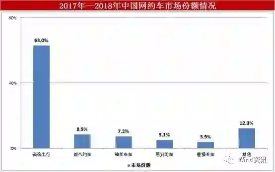 而如果从整个网约车市场情况来看,2017年-2018年期间,滴滴出行份额占比为63.0%。
