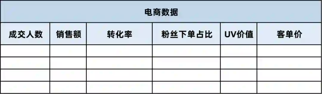 电商数据包含成交人数、销售额、转化率、粉丝下单占比、UV价值、客单价。