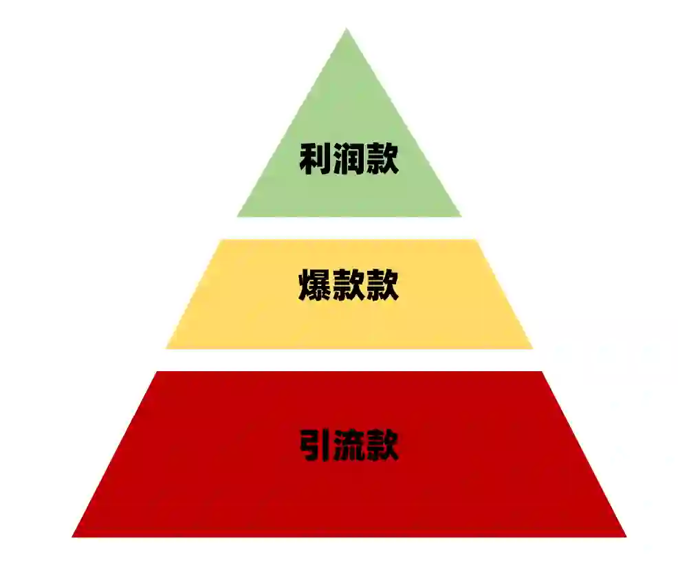 通常我们可以把产品分为3类:引流款、爆款、利润款。每个款对应的作用如下: