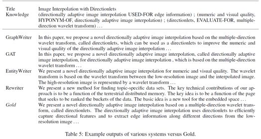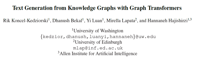 本文关注如何从信息抽取结果(特别是知识图谱)出发,生成连贯的多句文本。作者表示图谱化的知识表示在计算中普遍存在,但由于其非层次,长距离依赖,结构多样等特性,使得基于图谱的文本生成成为一个巨大的挑战。
