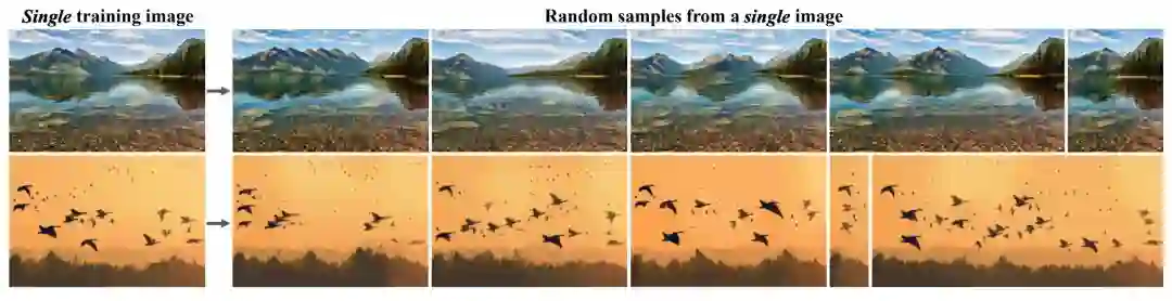 在这篇论文中,研究者介绍了一种无监督的生成模型 SinGAN,它以一种无条件约束的方式从单张自然图像中学习知识。经过训练,研究者的模型能捕捉图像块(patch)的内部分布,从而生成高质量、多样化的样本,并承载与训练图像相同的视觉内容。