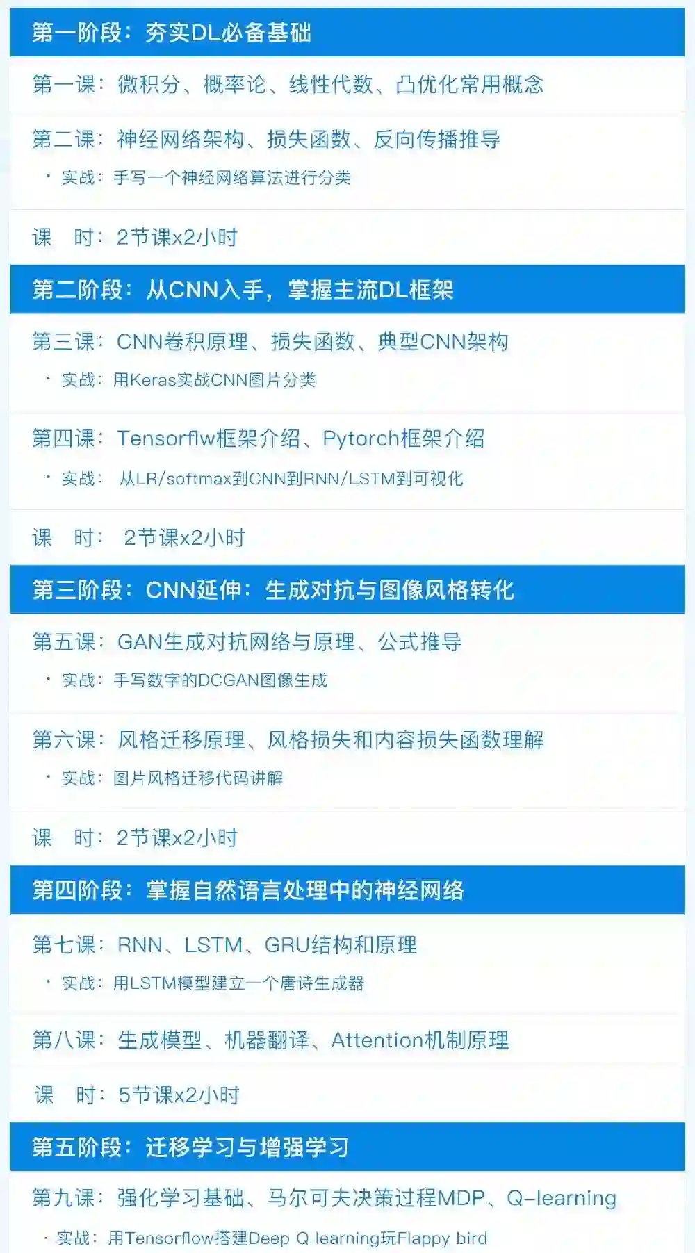 课程内容涵盖,ML和DL基础、CV基础与应用、目标检测和语义分割、神经网络、RNN、CNN 和生成对抗网络(GAN)、图像分割和模型压缩的核心算法与典型应用等热门领域。