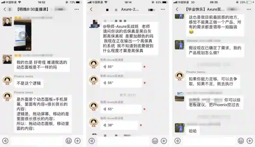 当你在学习Axure过程中,或者是在产品工作当中遇到了问题急需解决,但又害怕被领导diss的时候。微信班级群里@老师,快速解决遇到的问题,提升工作表现力。
