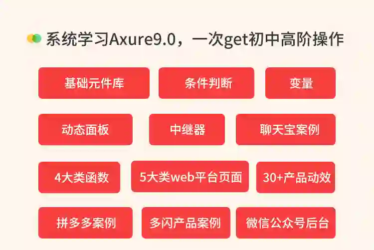 从Axure9.0功能、Axure技巧、原型思维3大方面帮助新人全面提升原型能力。