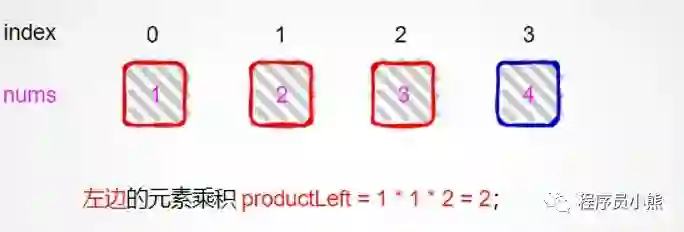 先求下标为 2 左侧元素的乘积;