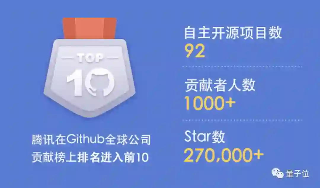 截至目前,腾讯已经在Github上已经开源了95个项目,超过1000个贡献者参与了开源贡献,拥有超过28万个Star数。
