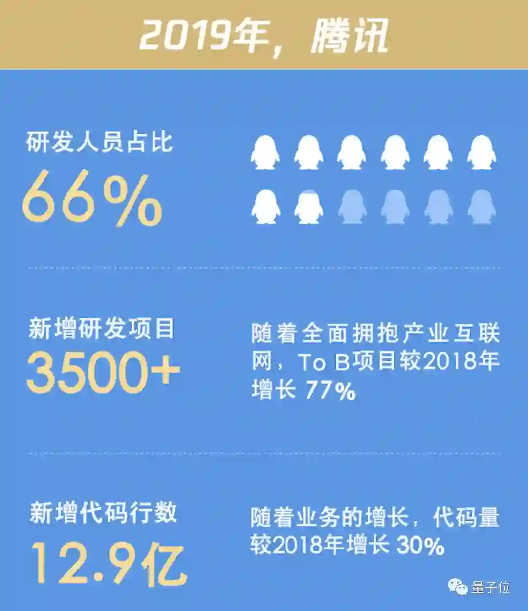 过去一年,腾讯的研发人员一共新写了12.9亿行,代码量较2018年增长30%。