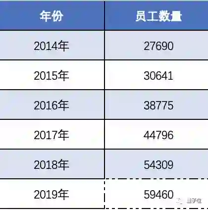 但可以根据2014年底到2018年底的员工数据,预测2019年底的员工数量为59460。注意,这仅供参考。