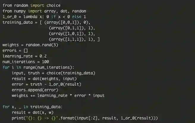 为了理解论文的核心,我们将用DeepMind的Andrew Trask编写来帮助我们理解。这不是一个随机的代码段。它曾被用于斯坦福大学Andrew Karpathy的深度学习课程,以及Siraj Raval的Udacity课程。除此之外,它解决了XOR问题,也解冻了第一个AI冬天。
