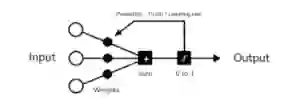 对于每个训练周期,你从左侧输入数据。初始随机权重添加到所有输入数据。然后总结出来。如果总和为负数,则将其转换为0否则映射到1。