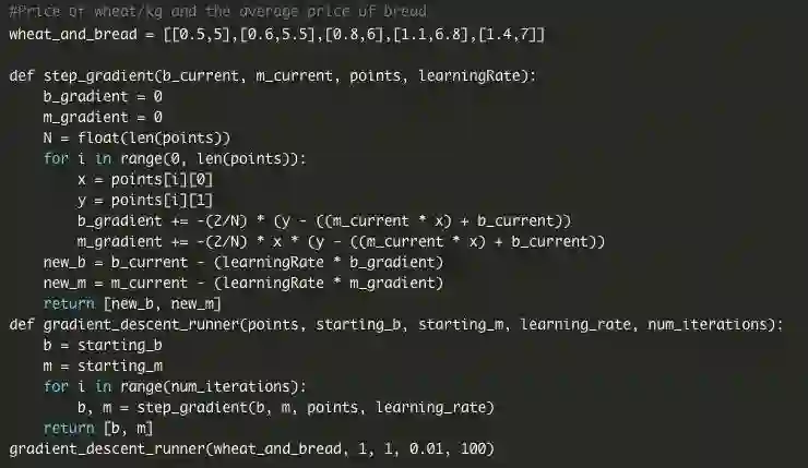 这没有引入任何新的知识。然而,将误差函数与渐变下降合并可能对一些人有一点困扰。你可以运行代码,慢慢思考这里面的逻辑。