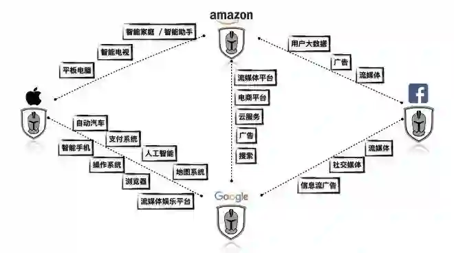 硅谷如果彼此抱团,那解放全人类就落在了西雅图的亚马逊。我曾分析过亚马逊的可怕之处是其颠覆模式的普遍适用性,她见谁都欠颠。我预测多年后上面那张PK图里,会有密集的战旗插在亚马逊周围,甚至搞出三英战吕布的戏码。亚马逊模式的扩张力是其他三家公司所不具有的——谷歌业务也很铺张,但总是显得散兵游勇。