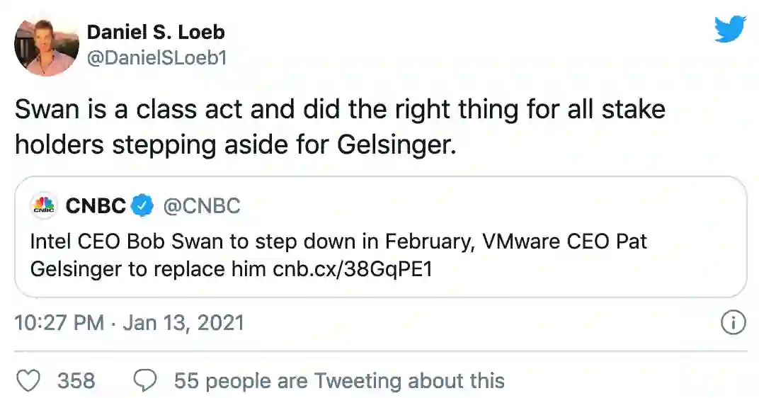 到了12月,在英特尔的市场份额输给了竞争对手AMD、三星和台积电之后,丹•勒布(Dan Loeb)的对冲基金Third Point敦促英特尔董事会探索「战略替代方案」。