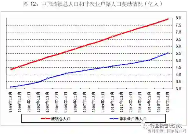从住宅总需求方面看,房子是用来住的,投资投机购房最终也要落实到真实居住上。到2016年末,中国城镇总人口接近8亿人(包含常住在城镇的2.5亿流动人口,其中绝大多数是农民工),比1999年末增加了3.5亿人。按照人均住宅面积30平方米计算,需要增加住宅面积105亿平方米。