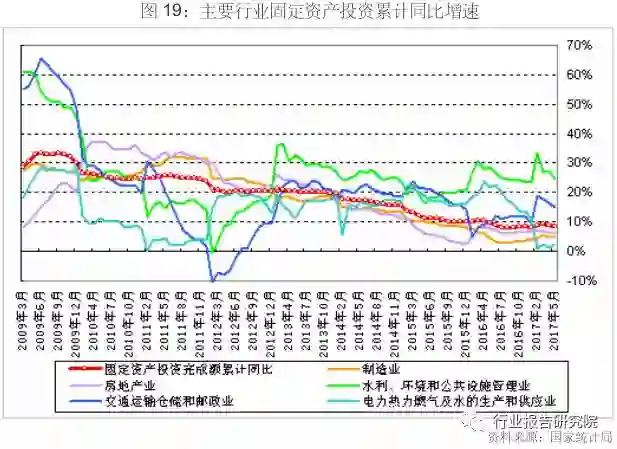 房地产业、水利环境和公共设施管理业、交通运输仓储和邮政业、电力热力燃气及水的生产和供应业固定资产投资额合计占全国固定资产投资总额比重将近50%,增加这些行业固定资产投资可以在较短时间内有效拉动内需,稳定经济增长。