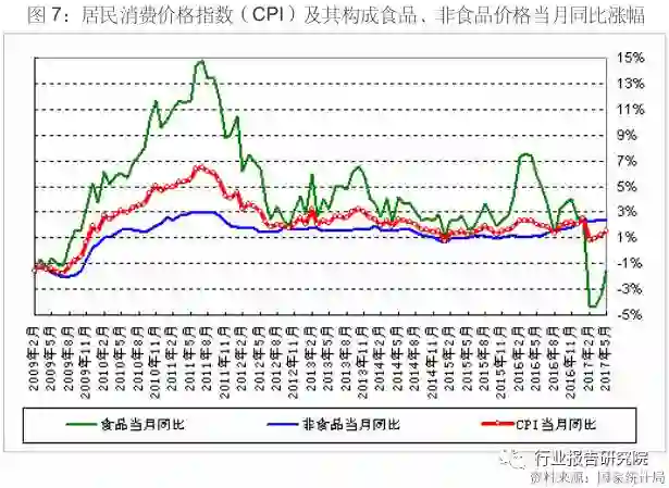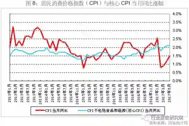 2017年下半年,食品价格异常波动对居民消费价格指数(CPI)的影响将逐渐降低,居民消费价格指数(CPI)预计缓慢上行到2%左右水平。