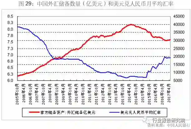 从2014年下半年开始,中国外汇储备持续减少,从2014年6月份的3.99万亿美元减少到2017年5月份的3.05万亿美元,减少了9400亿美元。