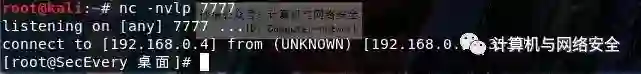 如果nc不支持-e参数的话,可以利用到linux中的管道符,首先在kali上开启监听: