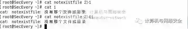 也有师傅把&这个符号解释为是取地址符号,学过C语言的小伙伴们都知道&这个符号代表取地址符,在C++中&符号还代表为引用,这样做是为了区分文件描述符和文件,比如查看一个不存在的文件,要把标准错误重定向到标准输出,如果直接cat notexistfile 2>1的话,则会将1看作是一个文件,将标准错误输出输出到1这个文件里而不是标准输出,而&的作用就是为了区分文件和文件描述符: