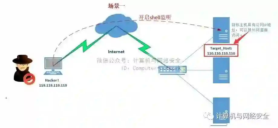 所谓反弹shell,指的是我们在自己的机器上开启监听,然后在被攻击者的机器上发送连接请求去连接我们的机器,将被攻击者的shell反弹到我们的机器上。