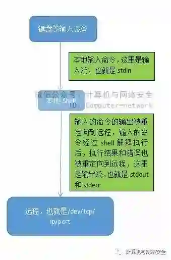 那么,0>&2也是可以的,代表将标准输入重定向到标准错误输出,而标准错误输出重定向到了/dev/tcp/ip/port这个文件,也就是远程,那么标准输入也就重定向到了远程: